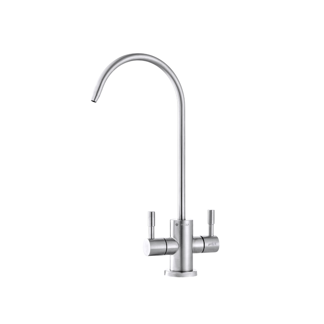 Descoperă noul nostru robinet cu 2 fluxuri de apă, o soluție inovatoare pentru sistemele tale de filtrare a apei, inclus în pachetul sistemului Finaqua DUO. Fabricat din oțel inoxidabil de înaltă calitate, acest robinet este disponibil în două variante de culori, astfel încât să se potrivească perfect cu designul bucătăriei tale. Cu un furtun de conectare de 1/4" (6 mm), acest robinet asigură o conexiune sigură și durabilă cu sistemele de filtrare, oferindu-ți posibilitatea de a obține două tipuri distincte de apă filtrată.
